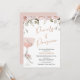 Blush Pearls Prosecco Blush Chá de panela Floral As pérolas de inspiração boêmica e o chá de panela prosecco apresentam um adorável arranjo floral e eucalipto em cima do design e um vidro cor de pincel. Este chá de panela também inclui algumas pérolas e pétalas de rosa dourado falsos e o cabeçalho da imagem Prosecco.