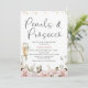 Pérolas Florais Blush e Chá de panela Prosecco Pérolas com Temas Florais e chá de panela Prosecco com um adorável arranjo floral com flores cor esbranquiçada e folhagem de eucalipto. Este chá de panela floral também apresenta alguns pontos falsos de brilho dourado e um cabeçalho de imagem de fonte de caligrafia moderna. Excelente para qualquer pessoa que procura um convite para chás de panela inspirado na boêmia.