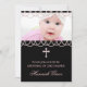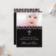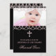 Adorável convite batizante rosa e preto. Pérolas rosa cor-de-rosa e modelo de convite batizante de fotos pretas.