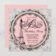 Lindas pérolas cor-de-rosa, renda e Torre Eiffel Paris doce, dezesseis convites de aniversário. Este elegante e preto parisiense, qualquer festa de aniversário de números, Quinceanera e doce 16 aniversários, é facilmente personalizado para o seu evento.