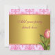 Damasco rosa elegante, tulipas cor-de-rosa e pérolas de qualquer convite de aniversário numérico. Adicione seus detalhes à frente e atrás simplesmente adicionando seus detalhes de evento, estilo de fonte, tamanho de fonte e cor e texto. Observe que todos os designs de convite que você encontrará no Zazzle são gráficos impressos em estoque de papel plano sem joias reais, arcos, levantados, gravados em relevo ou peças ou peças adicionadas.