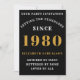 Para aqueles nasceres em 1980 e celebrando a sua festa de aniversário, temos o cartão de convite de aniversário ideal. O fundo preto com design branco e ouro é simples e, no entanto, elegante. Personalize facilmente o texto na frente e na parte traseira deste cartão de convite de aniversário usando o modelo fornecido. Parte da gama de padrões de configuração de cartões, suprimentos para festas e presentes.