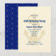 Convite de festa de aniversário tema âncora náutica para ele. Convites personalizados para festa de rapazes em azul marinho com uma grande imagem de âncora ao fundo para texto em azul marinho. Use para qualquer tipo de ocasião. Padrão de pequenas âncoras douradas no verso sobre azul escuro. Cantos recortados são opcionais.