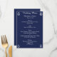 Convites personalizados de menu de casamento náutico azul-marinho com texto personalizável