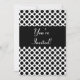 Um modelo de convite de noiva ou chá de fraldas personalizado com simples pontos de polca pretos grandes e pequenos sobre fundo branco. Clique em Personalizar para alterar as fontes, as cores de fundo e muito mais, e até salvar seu design para mais tarde.