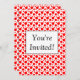 Um modelo de convite de noiva ou chá de fraldas personalizado com pontos de polca vermelhos simples, grandes e pequenos em um fundo branco. Personalize-o para alterar fontes, cores de fundo e muito mais, até salve seu design para mais tarde.