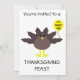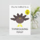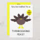 Esta engraçada convite de festas de Ação de Graças apresenta um desenho engraçado de um peru com grandes olhos pretos, um pequeno bico amarelo e penas de cauda enfiadas. Os pés estão voltados em direções opostas, fazer o peru parece desajeitado. O peru está segurando um balão amarelo com um dentro de mensagem que diz "é hora do peru". Esta é uma design de festa de ação de graças divertida. Há texto personalizável no verso para que você possa personalizar este convite.