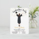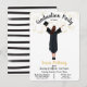 Convites de graduação moderna para o novo formando da sua família. Apresenta a parte de trás de uma garota feliz com vestido de graduação em preto, boné e diploma com falso confetti de ouro e um moderno preto e branco riscado para trás. Mude o cabelo para o ajustado das suas necessidades. Excelente para segundos graus, enfermeiros, universidades, Faculdade de Direito, formando, etc.