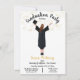 Convites de graduação moderna para o novo formando da sua família. Apresenta a parte de trás de uma garota feliz com vestido de graduação em preto, boné e diploma com falso confetti de ouro e um moderno preto e branco riscado para trás. Mude o cabelo para o ajustado das suas necessidades. Excelente para segundos graus, enfermeiros, universidades, Faculdade de Direito, formando, etc.