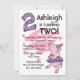 Celebre o segundo aniversário da sua menina com estes adoráveis convites de festas personalizados apresentando um pigmeu rosa vestido com um tutu pontilhado de polca roxo e chapéu de festa, uma grande polca pontilhada número dois e um fundo divertido. Personalize-o da maneira que você quer. Também estão disponíveis selos, canecas, autocolantes e camisetas para bebês. PinkInkArt original!