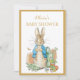 Este design de coelho Peter é totalmente personalizável. Frente: (Nome) Chá de fraldas Voltar: Detalhes do convite para personalizar.