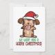Cachorro de natal bonito e engraçado com as palavras "Deseje seu Natal Leitão". DESIGN E TEXTOS PERSONALIZÁVEIS E EDITÁVEIS. Use suas próprias palavras, a cor de fundo preferida e até sua própria escolha de fontes disponíveis na loja. Você também pode TRANSFERIR DESIGN para OS PRODUTOS de que quiser. Obrigados para "The Make Engine" propriedade da Zazzle. Tenham uma atmosfera fofa e kawaii com ilustração de desenho animado.