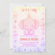 Featuring a sweet and playful elephant surrounded by soft pink tones and delicate purple tone, this invitation is perfect for welcoming your baby girl in style. The pastel color palette and charming design will delight your guests and set the tone for a joyful, love-filled celebration. Personalize with your event details and get ready to shower your little one with love!