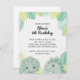 Unique & Trendy Design: Features an adorable cartoon Brontosaurus, surrounded by tropical leaves and a clean design in a trending pastel color palette (mint green, light blue, and soft yellow). Its modern style stands out from traditional invitations!