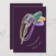 Get ready for the 2026 Mardi Gras season with this elegant and soulful jazz-themed invitation! This design features a stunning watercolor vintage microphone adorned with traditional purple, green, and gold beads and festive feathers. Set against a deep royal purple background, it perfectly captures the spirit of a New Orleans French Quarter night.