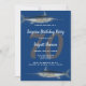 Tema de pesca, convite de aniversário para homem adulto. Imagens de espadarte em cima e em baixo na frente, e varas de pesca nas costas, decoram cartões azuis escuros com texto personalizado de cinza. Sua idade está em cinzas escuras e é parte do fundo. Isto pode ser criado para uma festa surpresa, ou não. Escolha atualizar o papel e receber descontos para ordens em massa.