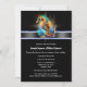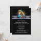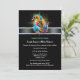 Um design de aquarela simples e elegante de um cavalo de mar cor laranja, azul e rosa escuro, de altura acima de corais e conchas azul e laranja vibrantes. O cavalo marinho tem uma luz brilhante atrás dele que faz com que pareça brilhar, brilhar e brilhar. O fundo preto da meia-noite tem modelos brancas para sua redação personalizada e o modelo deve ser excluído se não for necessária nenhuma informação adicional para seus convidados. São ideais para a praia, náutica, sob o mar, os casamentos com ilhas tropicais ou com destino costeiro, passados de nascimento e eventos especiais. Eles são adequados para comemorações do dia e da noite.