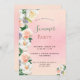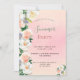 Um convite de verão em branco, coral e pêssego. Um fundo cor-de-rosa claro, rosa, cor-de-rosa. Decorados com flores grandes e peludas, florais em branco, coral e pêssego. Modelo para o seu nome e informações da festa. A palavra Summer é escrita com um estilo moderno e manchado. Texto em verde, rosa escuro e preto. Traseira: rosa dourado, fundo cor-de-rosa pincelado. Perfeito para uma celebração familiar de verão, um jardim, quintal, barbeque, churrasco, festa de piscina.