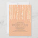 Uma corda rústica de luzes festa de noivado convites para a sua celebração moderna, mas antiga, no celeiro, rancho ou alojamento. Convite de pêssego totalmente personalizável - você pode alterar o estilo da fonte, a cor, mover as linhas de texto e gravar no verso também. O fundo tem uma textura de madeira e pequenas luzes cintilantes embelezados. O estilo da fonte é bonito, moderno e casual!