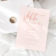 Cartão de convite de aniversário surpresa minimalista com texto de script que diz "shhh... é uma surpresa!" no topo. O fundo é pêssego.