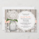 Os chás de panela monogrammed do frasco de pedreiro do estilo rústico bonito com as flores brancas do hydrangea e uma cor damasco de madeira da cerca e da antiguidade atam o fundo e o pêssego pálido costurado ilumina a fita coral. Estes convidam podem ser personalizados com as iniciais e o monograma dos noivos no frasco de pedreiro. Estes convidam são perfeitos para um país, uma casa da quinta, um partido de jardim ou um chá de casamento do estilo do barnyard. Projetado por Chrissy H. Estúdio, LLC.