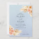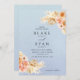 Aprecie seu convidado com este belo convite para o casamento. Cheio simples e limpo de elegância e graça com belos panos de fundo de lavagem de cor azul-d-água e delicadas pulverizações florais de cor-d-água definindo seus detalhes de casamento em uma fina mistura de pêssego, laranja, rosa-pincel, coral-poeirento, champanhe e matizes de creme. Opção de mudar "juntamente com os seus pais" para "juntamente com as suas famílias", "juntamente com a alegria do excelente" ou "juntamente com o prazer do excelente". Capacidade de editar o design usando a ferramenta design, usando o botão no final das caixas de texto modelo e fazer alterações na posição do texto, no estilo da fonte ou no tamanho. Voltar no mesmo fundo azul de lavagem com aquarela da frente. Na moda e design elegante com flores delicadas e detalhes da grama de pampas. Parte da nossa coleção "Peach Floral Delight and Blue" com uma variedade de produtos de coordenação disponíveis. Visite a coleção inteira em: https://www.zazzle.com/collections/peach_floral_delight_with_blue-119436951689312574
