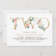 Convide convidados com este convite floral feminino e caprichoso para o segundo aniversário. Apresenta uma tipografia falsa de folha dobrada com uma pincel de aquarela e flores brancas e acentos de verde. Este bonito convite floral é perfeito para os aniversários de jardim e primavera.