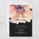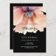 Um convite moderno, na moda e glamouroso para uma festa de aniversário 50ª (ou qualquer idade). Fundo de cor preta, decorado com um pêssego grande e uma flor de cor aquosa púrpura. O nome é escrito com um script de estilo com letra de modo manual. Personalize e adicione os detalhes da sua festa.