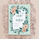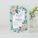 Convites Pêssego Teal Floral Folha Frame Casamento