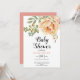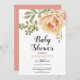 Pêssegos, flores de cacto de aquarela e primavera suculento e convite para chás de fraldas florais neutros de verão. Apresenta flores de cacto de pêssego e folhas verdes. O dorso é de cor sólida de pêssego.
