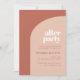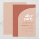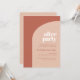 A festa nunca acaba! Organize seu casamento após a festa com estes convites modernos. Minimalista, porém impressionante: adote este design tipográfico ligeiramente retrorreflector para a sua papelaria de casamento, com um design de arco moderno e terracotta e cores laranja queimadas. Texto, cores e fundo totalmente personalizáveis.