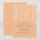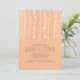 Uma corda rústica de luzes ensaiando convites jantados para o seu janto moderno, mas antigo, no celeiro, rancho ou alojamento. Convite de cor de pêssego totalmente personalizável - você pode alterar o estilo de fonte, a cor, mover linhas de texto e gravar também no verso. O fundo tem uma textura de madeira e pequenas luzes cintilantes embelezados. O estilo da fonte é bonito, moderno e casual!
