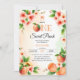 Um doce pessegueiro, primeiro convite de festas primeiro aniversario. Este encantador primeiro Convite de aniversário abraça um tema "Um Pêssego Doce". A design da frente combina lindamente delicadas flores de pêssego no topo com pêssegos maduros e folhas no fundo e um arco de coquetes em pêssego. O texto central "UM pêssego doce" incorpora, de forma inteligente, um gráfico de pêssego em vez da letra "O". O fundo apresenta uma lavagem aquosa de cor macia em pêssego harmonioso e verde-menta, enquanto o dorso é adornado com faixas de aquarela coordenadas nas mesmas cores encantadoras.