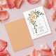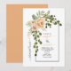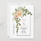 Ensino de janto para o ensaio de casamento da primavera de pêssego. Esta adorável design de casamento apresenta um arco com flores de cacto de pêssego e folhas verdes no canto esquerdo. O nome está na tipografia de script.