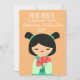 convites de festas adequados para um tema japonês feito em uma festa japonesa. A ilustração do estilo artístico das bonecas kokeshi tradicionais bonitas é colorida e a cor e o texto do fundo podem ser alterados de acordo com o seu gosto pessoal.