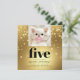 Comemore o aniversário do seu animal de estimação com esta moderna tipografia, adicione fotos e design de aniversário de texto com fundo de ouro falso e cobertura de confete de ouro. Personalize com nome, foto e informações da festa. Parte de uma coleção. ©Marisu Valencia. Foto cortesia de @sparklethetinychi