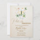 Vidro de champanhe chic e flores brancas em fundo creme. Um convite bonito que pode ser personalizado com seu nome. Selecione o botão "personalizar" para alterar o estilo, a cor e o tamanho da fonte.