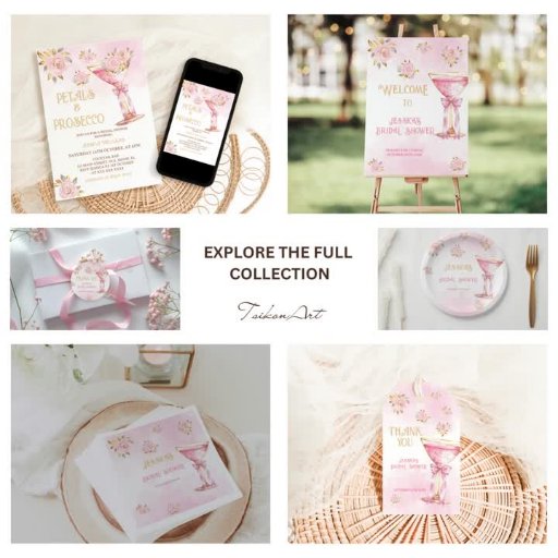 Convites Petais e Prosecco Elegante Chá de panela Floral
