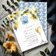 Convites Pétalas Azul e Amarelo do chá de panela e Prosecco