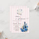 Célula de água salgada, pétalas e prosecco em fundo listrado rosa. Um convite bonito que pode ser personalizado com seu nome. Selecione o botão "personalizar" para alterar o estilo, a cor e o tamanho da fonte.