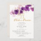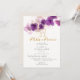 Um elegante e moderno chá de panela "Petals and Prosecco", com uma elegante e expressiva várzea de orquídeas roxas de aquarelas e duas flautas estilizadas de champanhe dourado (não ouro real, este é um efeito digital).