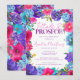 As flores azuis brilhantes, as rosas roxas profundas e as flores tropicais cor-de-rosa magenta criam uma vibrante estrutura floral. Petals & Prosecco é escrito em uma moderna combinação de tipografia rosa e roxa de tendências do script simples e do tipo negrito. A parte de trás do convite é tão ousada e colorida quanto. Este convite faz parte da Coleção Azul Púrpura Cor-de-Rosa Negrito.