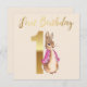 Peter, o Coelho, com um ouro número um para aquele primeiro aniversário especial.