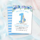 Watercolor Peter Rabbit Baby Boy's primeiro aniversario Blue Floral Invitation. Itens correspondentes disponíveis.