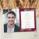 Apresentando delicadas folhas verde-aquarela em um fundo burgundy, este convite de festa de formatura de doutorado chic pode ser personalizado com sua foto de formando e detalhes de celebração. Projetado por Thisnotme©
