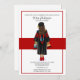 Ilustração da moda do formando Latina Ph.D com capuz e convite à serpata. Convite para formatura feminina. Estudante feminino em boné e vestido preto. Este convite é perfeito para dar a sua família e amigos. Comemore sua grande conquista ao dar este convite de formatura único e elegante. Este convite é personalizável. Adicione suas informações.