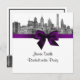 Philadelphia Pennsylvania Skyline Etch Look 01 Invitation Suite Purple Ribbon - Convite para Festa de solteira Elegante, convites e acessórios personalizáveis para chic e na moda com uma vista gravada a preto e branco do horizonte Philadelphia, Pensilvânia. Ele também apresenta um arco de aparência de uma púrpura. Este produto faz parte de um conjunto de designs correspondentes que são facilmente personalizáveis para muitas ocasiões e eventos. Se você precisar de placas RSVP separadas, Obrigado Notas, Carimbos, ímanes, etiquetas de vinho, menus, cartas de escolta, programas de eventos, etiquetas de favorecimento ou outros acessórios, por favor verifique nossas outras listas. Se você não vir um produto correspondente ao qual você está interessado, ou gostaria de ver esse design em cores diferentes ou com fotos diferentes do NYCisMyMuse que você vê em nossa loja, entre em contato conosco e ficaremos felizes em acomodá-lo. Observe que esta é uma design gráfica / foto que é transferida para o produto subjacente e não contém tecidos, fita, metais, gravura, joias ou gravuras reais. 2013 ©NYCisMyMuse