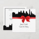 Philadelphia Pennsylvania Skyline Silhouette Invitation Suite Red Ribbon - Convites e acessórios elegantes para Convite de festas doce e elegantes, com um olhar gravado a preto e branco do horizonte Filadélfia, Pensilvânia. Ele também apresenta um arco de aparência de cetim vermelho. Este produto faz parte de um conjunto de designs correspondentes que são facilmente personalizáveis para muitas ocasiões e eventos. Se você precisar de placas RSVP separadas, Obrigado Notas, Carimbos, ímanes, etiquetas de vinho, menus, cartas de escolta, programas de eventos, etiquetas de favorecimento ou outros acessórios, por favor verifique nossas outras listas. Observe que esta é uma design gráfica / foto que é transferida para o produto subjacente e não contém tecidos, fita, metais, gravura, joias ou gravuras reais. 2013 ©NYCisMyMuse