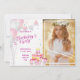Capture the joy of your child’s big day with this adorable photo birthday invitation! Featuring pastel balloons, bunting, birthday cake, and presents — this two-panel design includes a customizable photo area to show off your little one’s excitement. Soft pink, purple, and white tones make it perfect for girls’ birthdays or any sweet celebration.