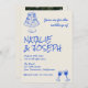 Convites Photo QR Code Hand Drawn Blue Cake Bows Wedding